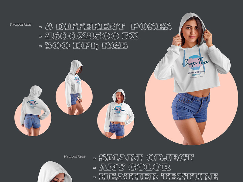These are straight forward high res mockups with only the essential layers and no frills.8 women crop top hoodie mockups.The end result the mockup is also designed to add products to your online storefront easily.
